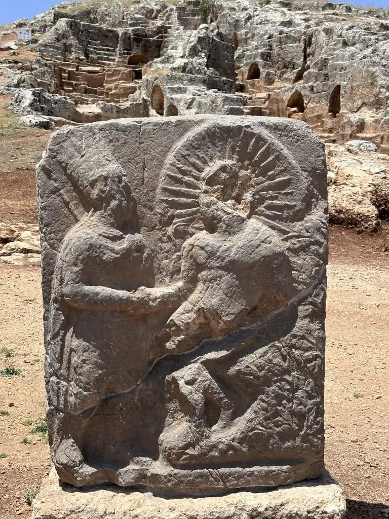 Tümülüs, Kommagene Kraliçesi Isias ve ailesi için yapılmış bir anıt mezardır. Yaklaşık 2.000 yıllık geçmişe sahip olan bu yapı, devasa taş bloklarla inşa edilmiş bir höyükten oluşur. Çevresinde ise aslan, boğa ve kartal heykellerinin yer aldığı sütunlar bulunur. Bu heykeller, Kommagene Krallığı’nın sembollerini ve krallığın gücünü temsil eder. Günümüzde sadece birkaç sütun ayakta kalmış olsa da, bu kalıntılar bölgenin tarihi atmosferini yaşatmaya devam eder.